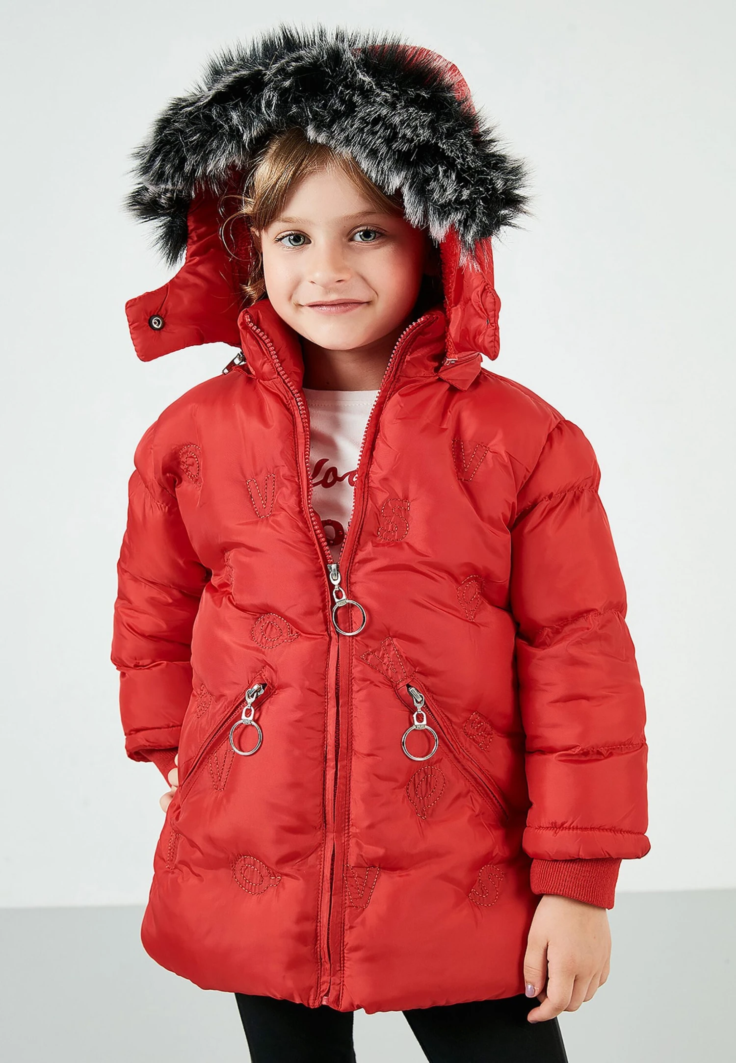 | Details capuchon | Afneembare imitatiebontkraag |
